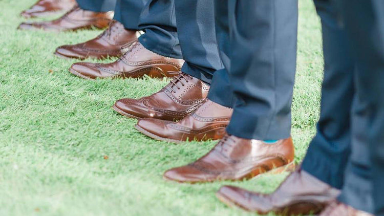 Mens Goor Tan Navy Lace Up Brogue Oxford Shoes