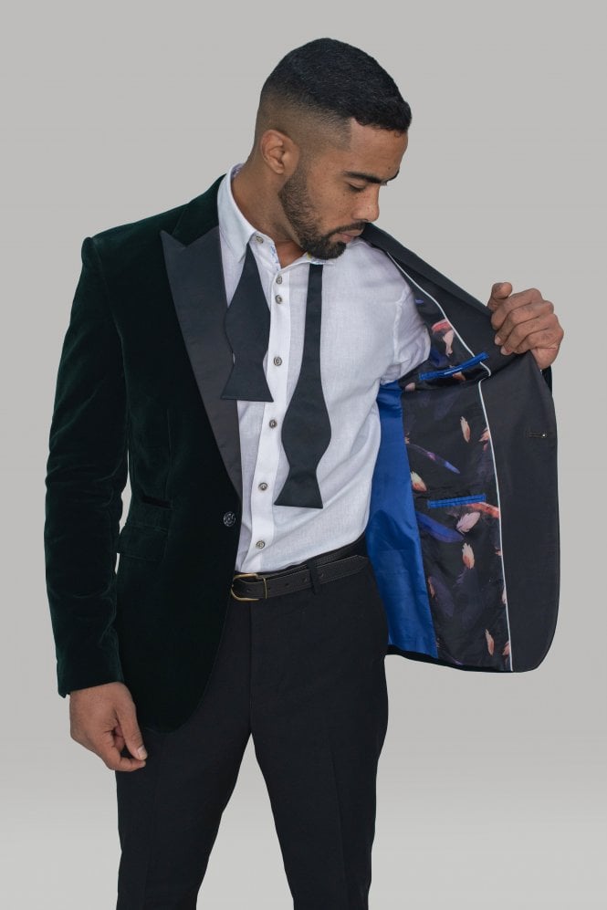 The classic Cavani Rosa Velvet Blazer is now available in a stunning forest green. You will surely make an entrance whilst wearing this stunning jacket.
